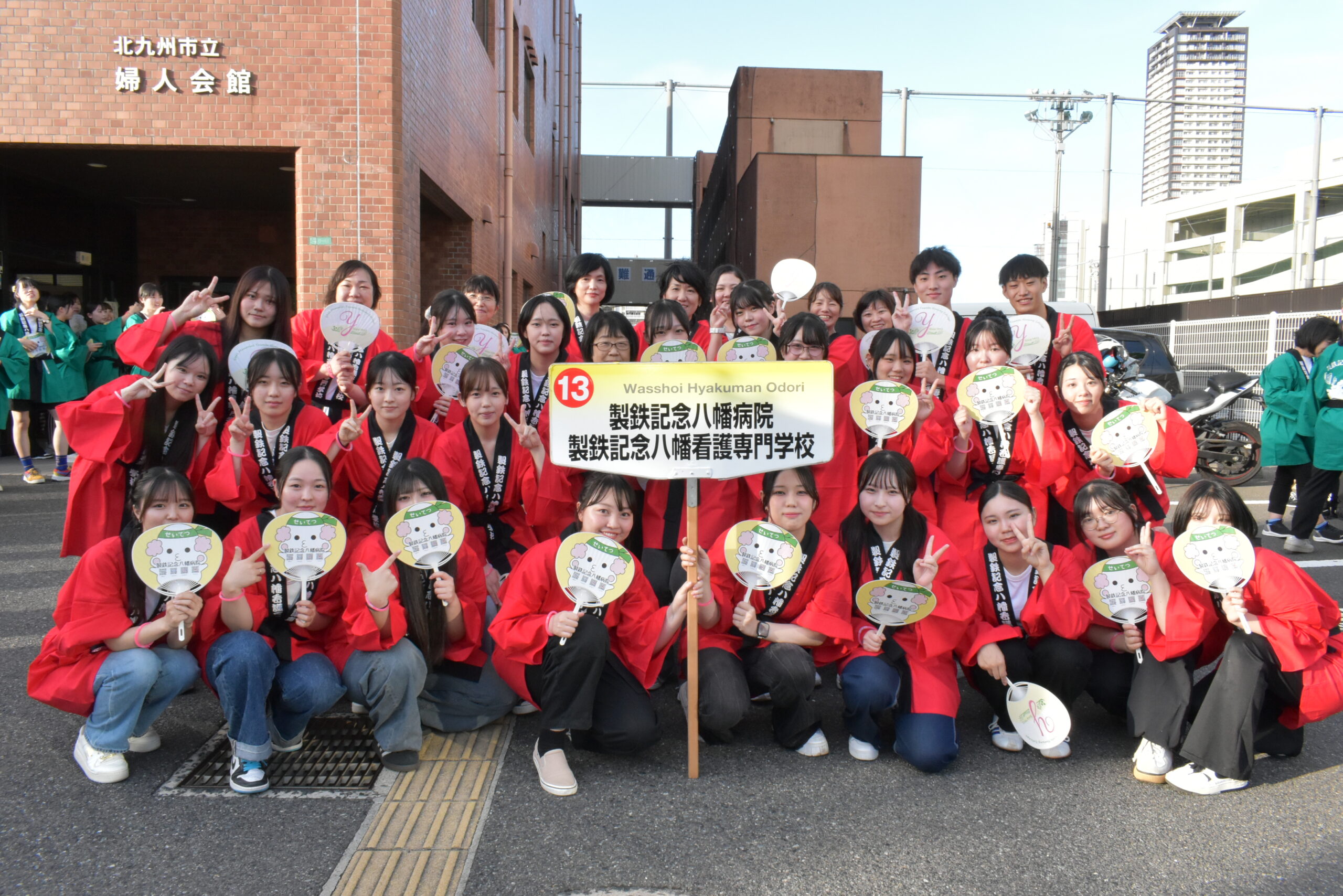 本校の学生24名と教員8名が製鉄記念八幡病院の職員とともに「わっしょい百万夏祭り」に参加しました。