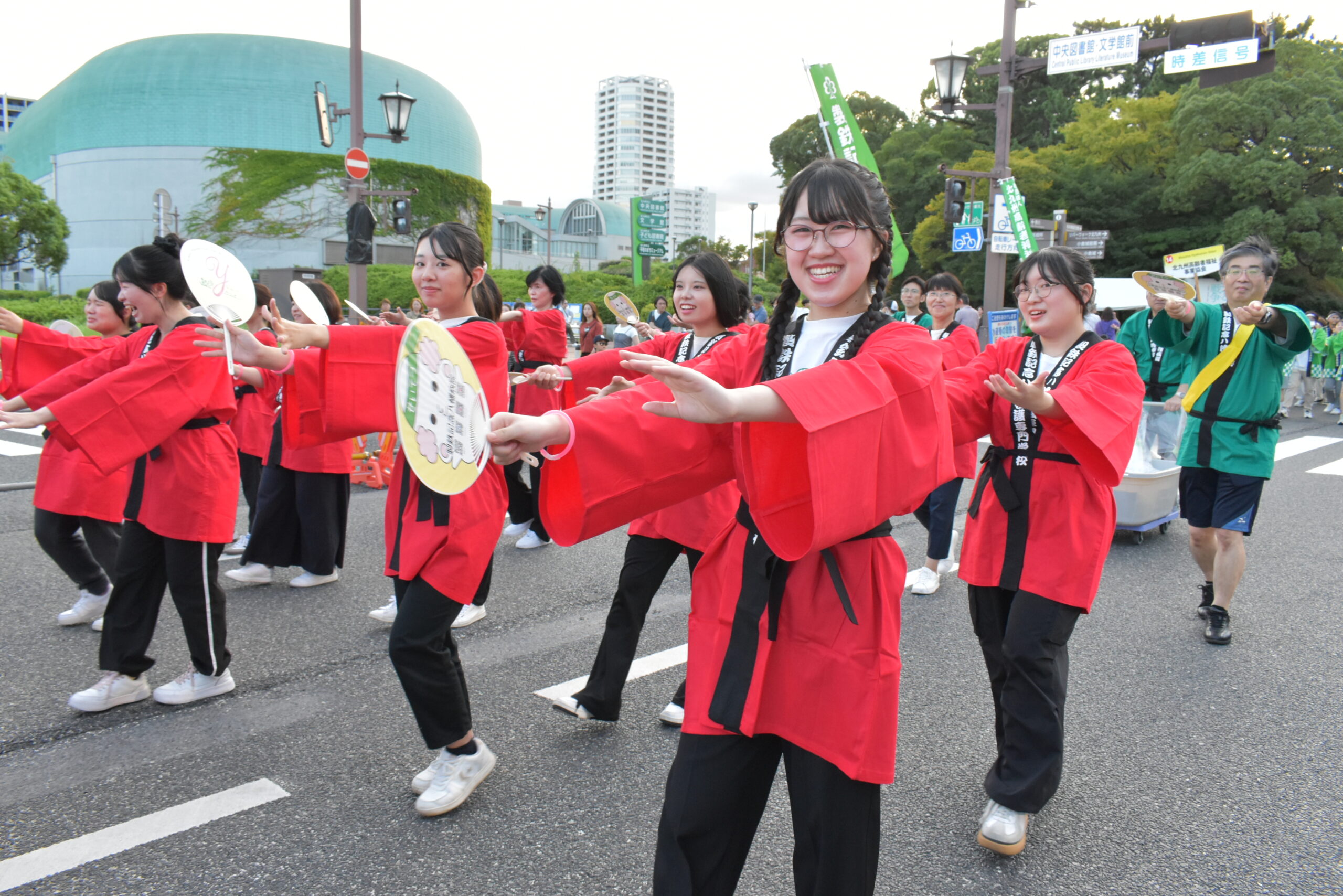 猛暑の影響で例年より1ヶ月ほど日程が延期されたことで、爽やかな汗を流しながら、1時間にわたり「百万踊り」を踊りきりました。