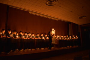 来賓、保護者、病院関係者、2.3年生に見守られ、学生一人ひとりがナイチンゲールの灯火を受け継ぎ、看護師を目指す者としての思いを宣誓しました。
