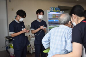 - 患者さんのリハビリの様子を、メモを取りながら(熱いまなざしで)真剣に観察しました