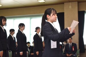 芹野恭子学校長より「37名で切磋琢磨しながら、成長していきま